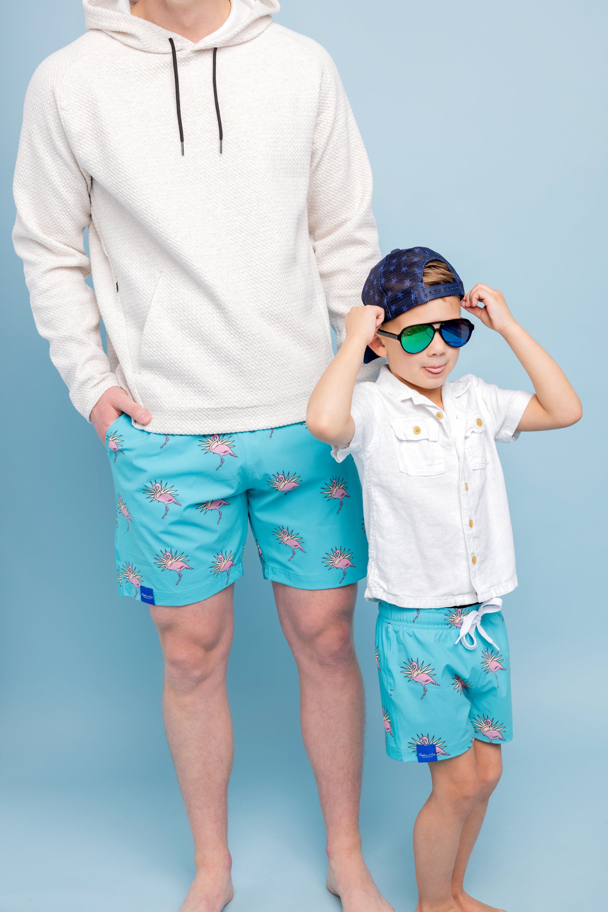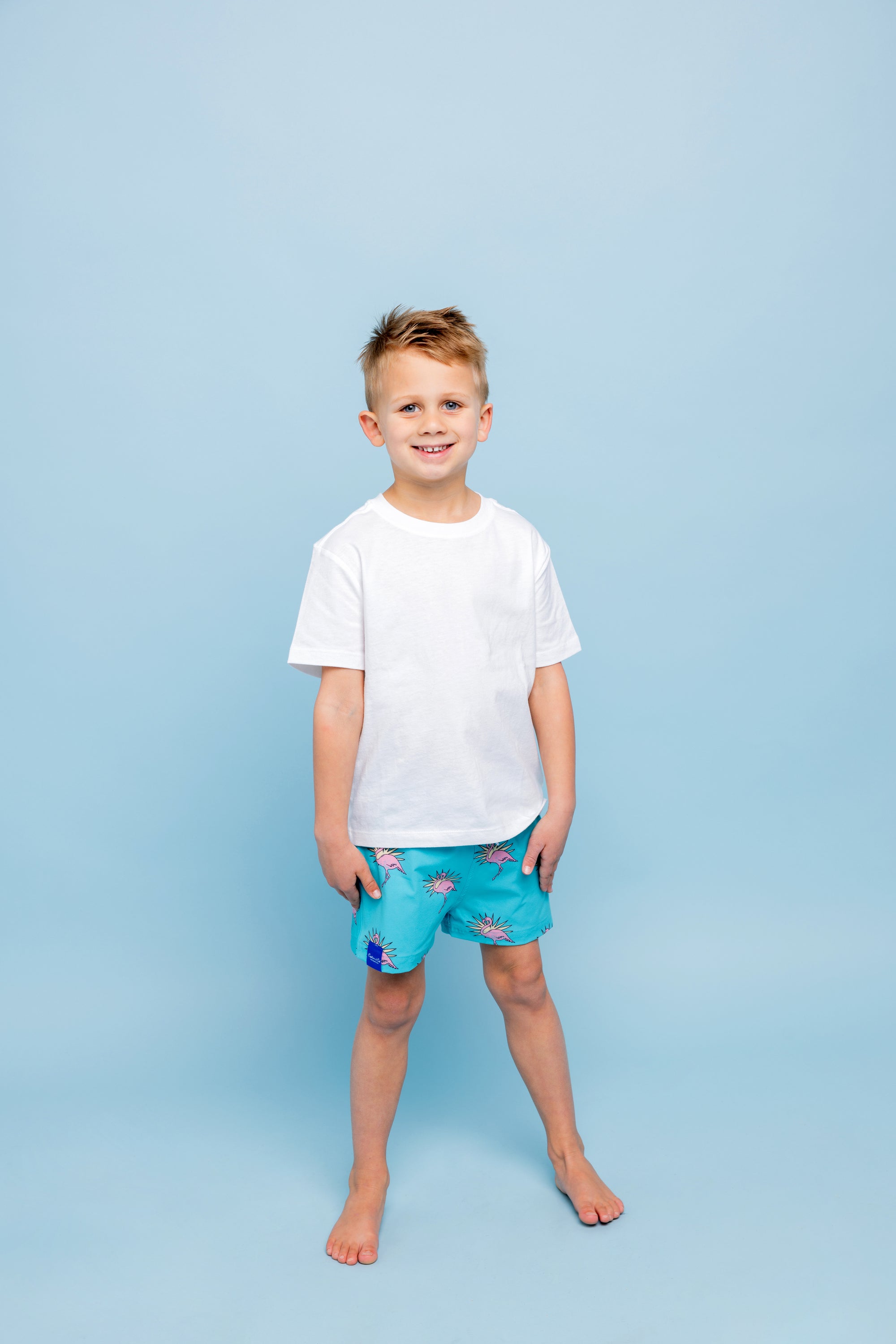 - New, lightweight, stretchy fabric that allows your little guy to crawl, run, and splash