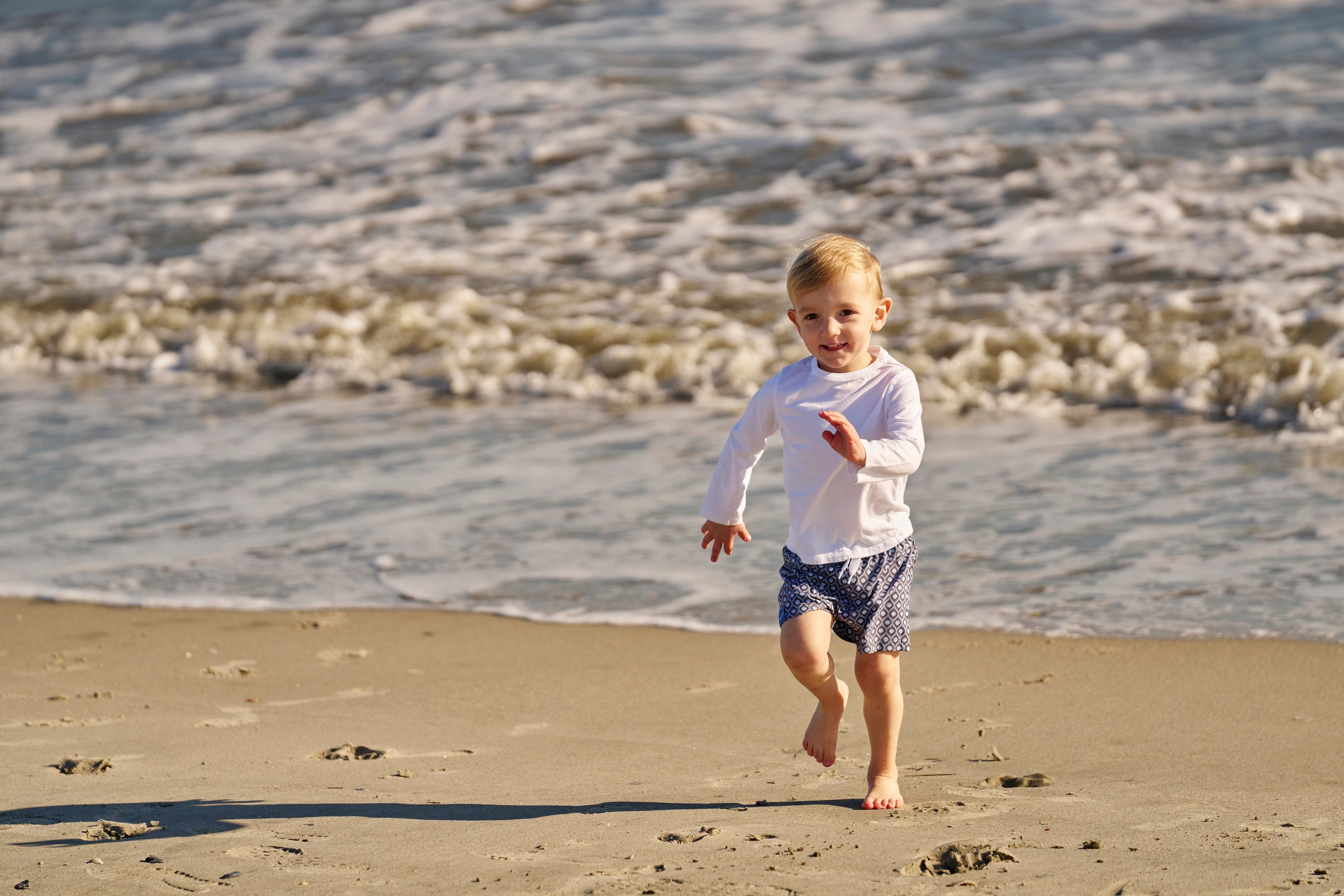- Lightweight, stretchy fabric that allows your little guy to crawl, run, and splash