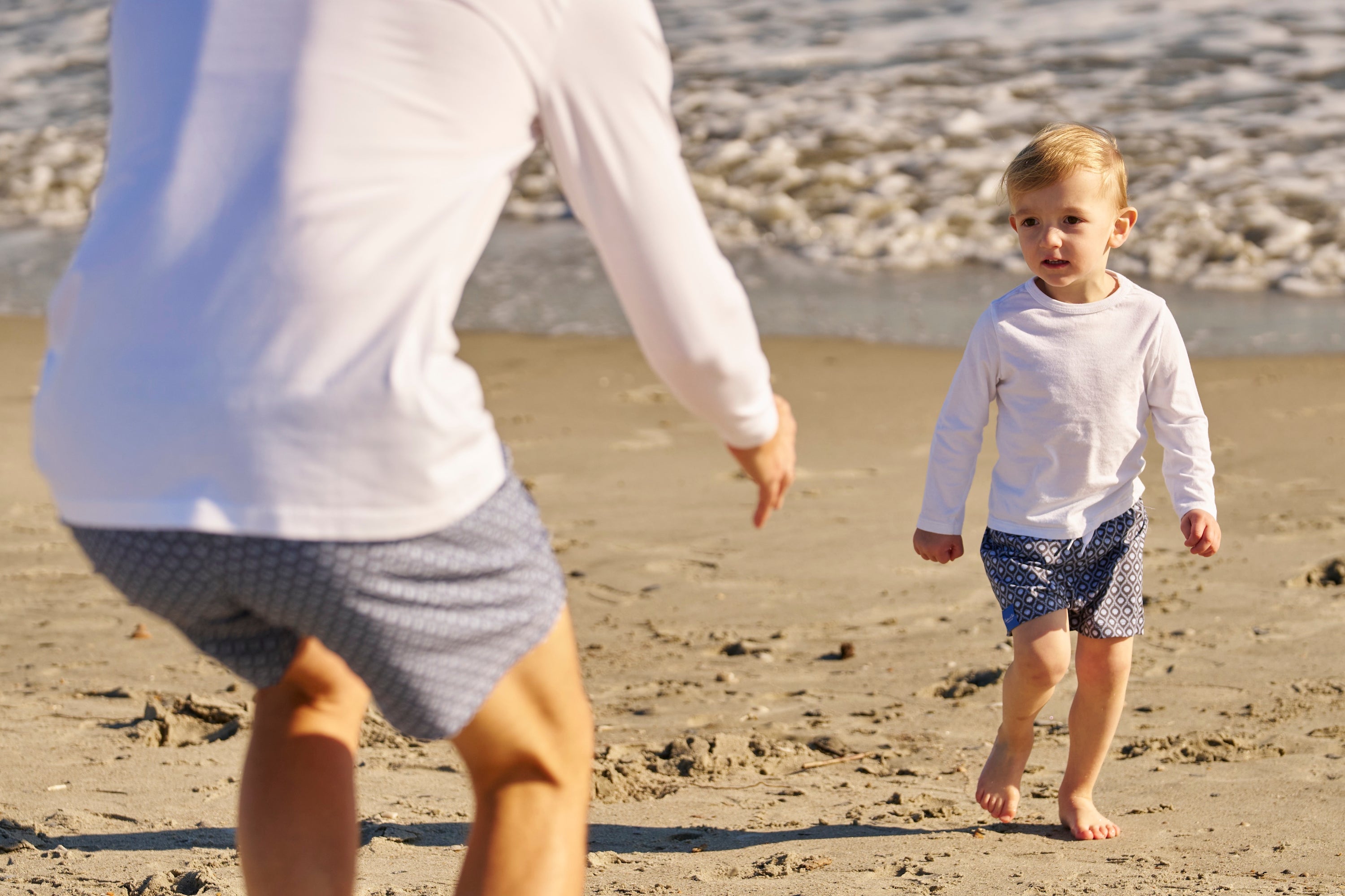 - Father and son matching swimsuit print